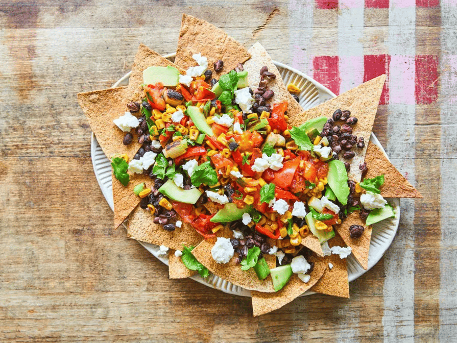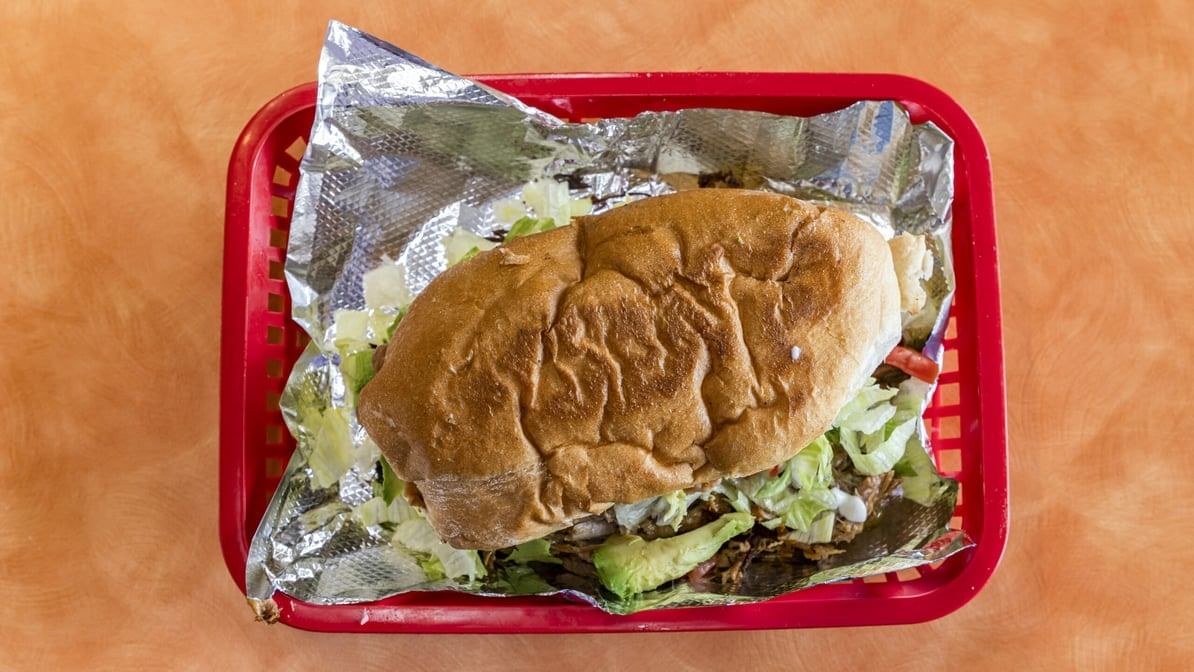 Lettuce, tomato, avocado, beans, meat, melted cheese and jalapeños