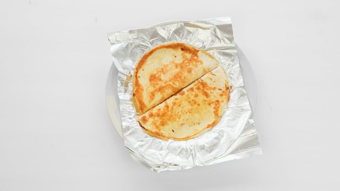 Grilled flour tortilla filled with melted cheese, typically served with sour cream, guacamole, pico de gallo, and lettuce