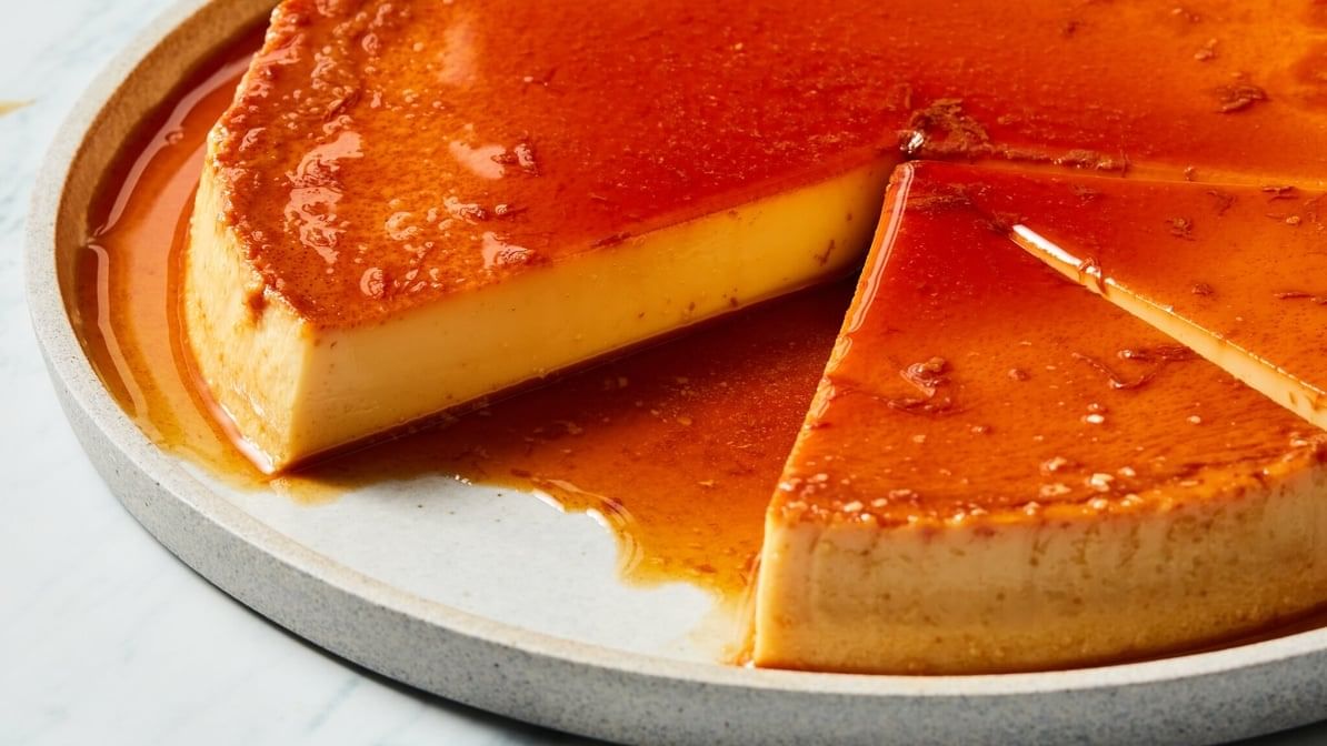 Smooth caramel custard with a rich, creamy texture and a golden caramel glaze