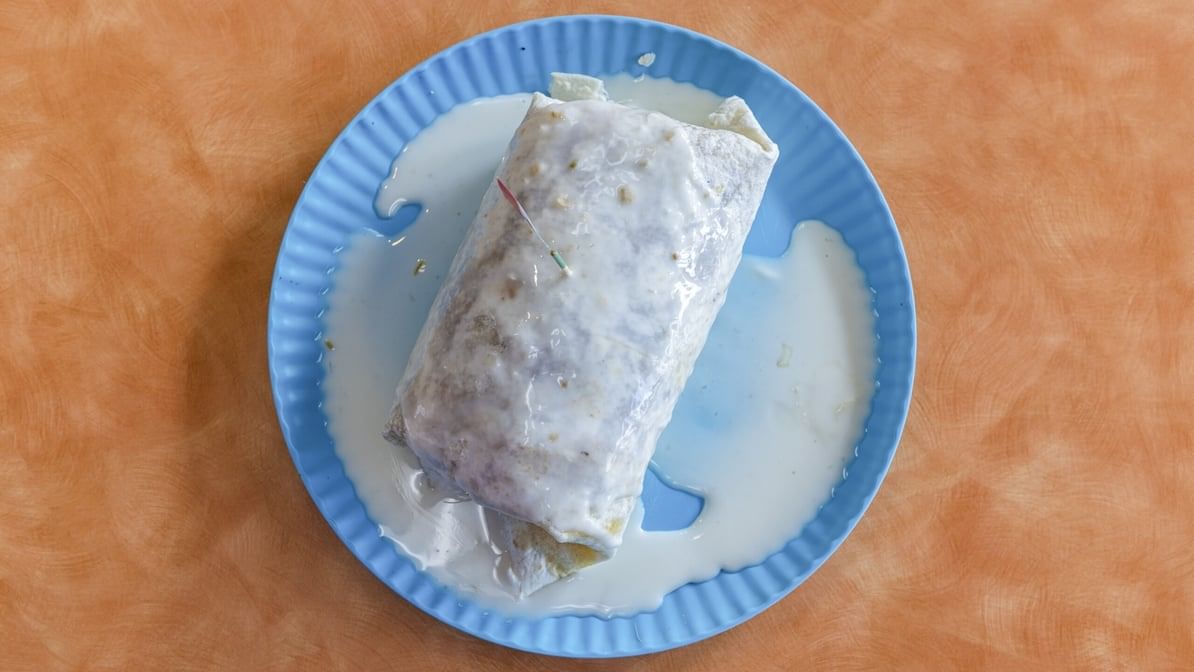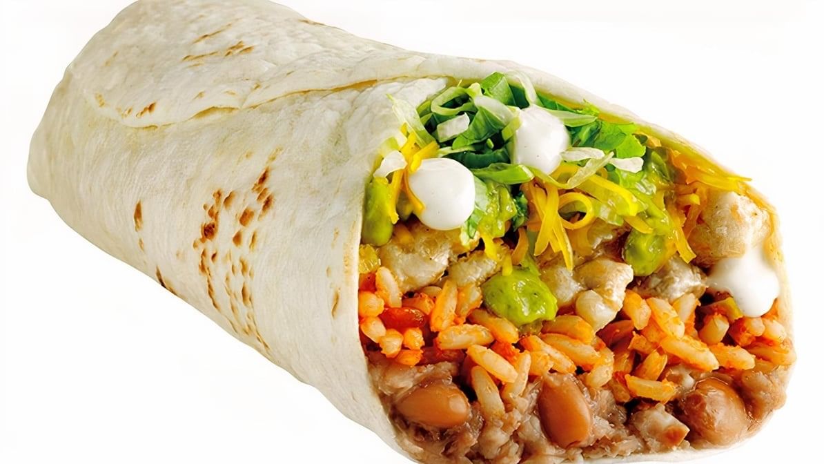 Meat, bean and cheese in a flour tortilla