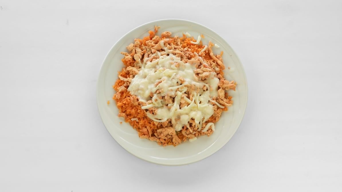 Mexican rice with grilled chicken and cheese dip sauce
