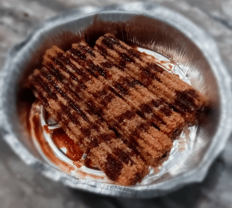 Fried churro filled with caramel, dusted with cinnamon and sugar